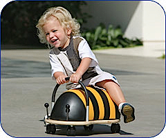 The distinctive shape of the Original Wheely Bug is very user friendly. The bright and friendly design is an instant attraction to girls and boys alike. They go backwards, forwards, sideways, and round and round. Children don't get stuck against obstacles like some other ride on toys. Wheely Bugs help promote gross motor skills and balance like no other toy.
